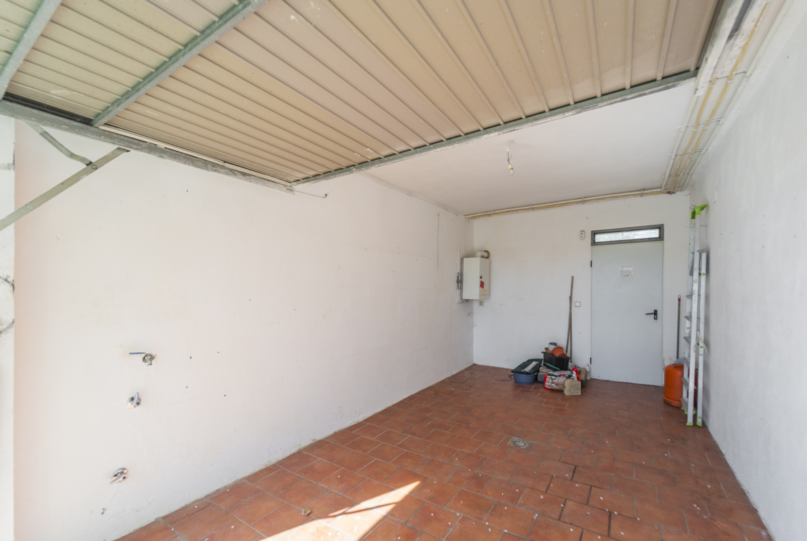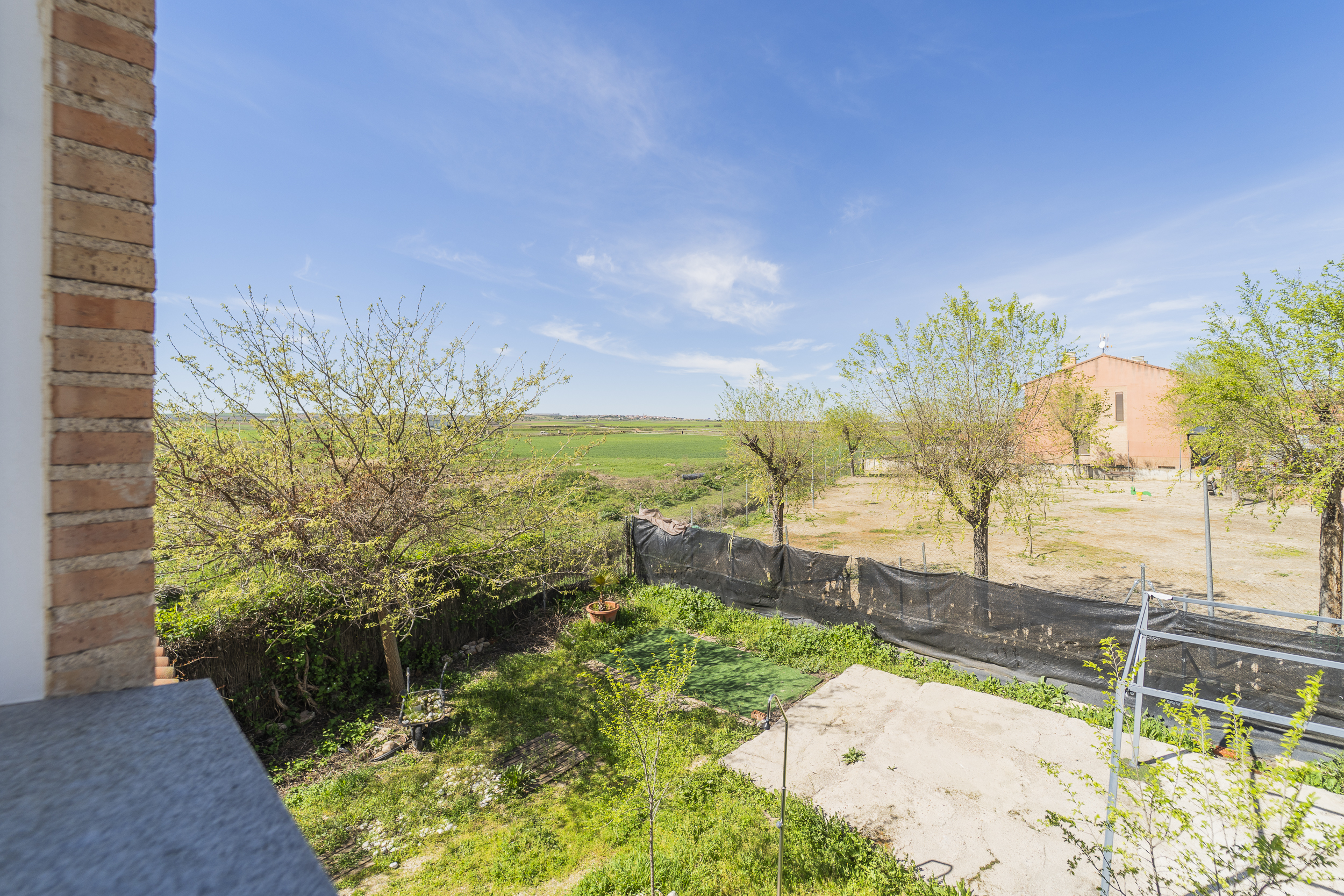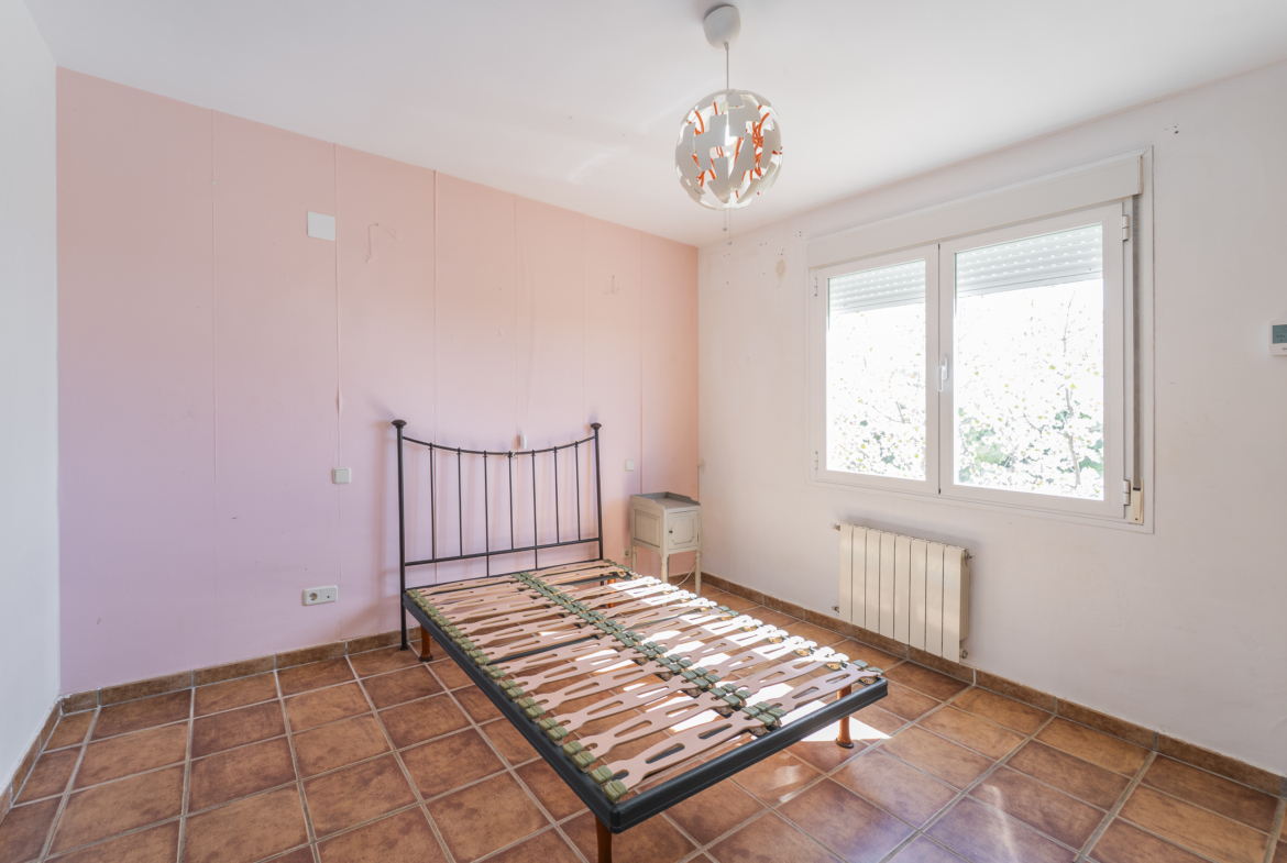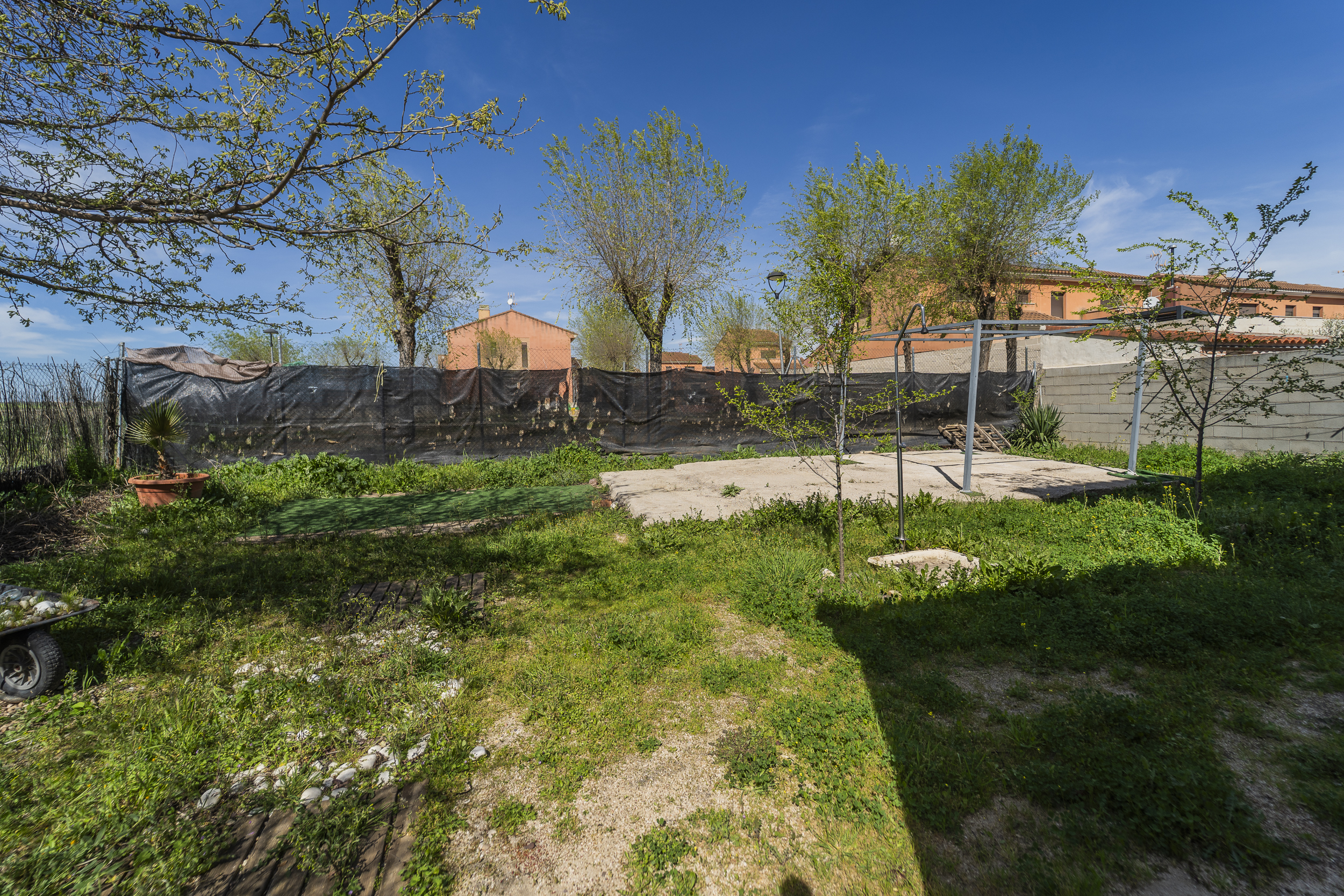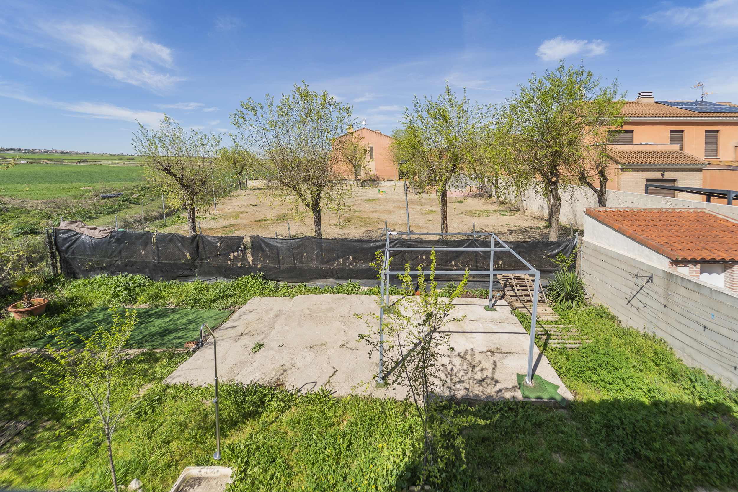 ​Exterior: La propiedad ofrece un jardín delantero y una amplia parcela trasera con arbolado frutal y espacio suficiente para construir una piscina y zona de disfrute al aire libre. Además, dispone de garaje en superficie.