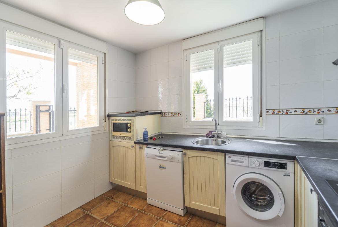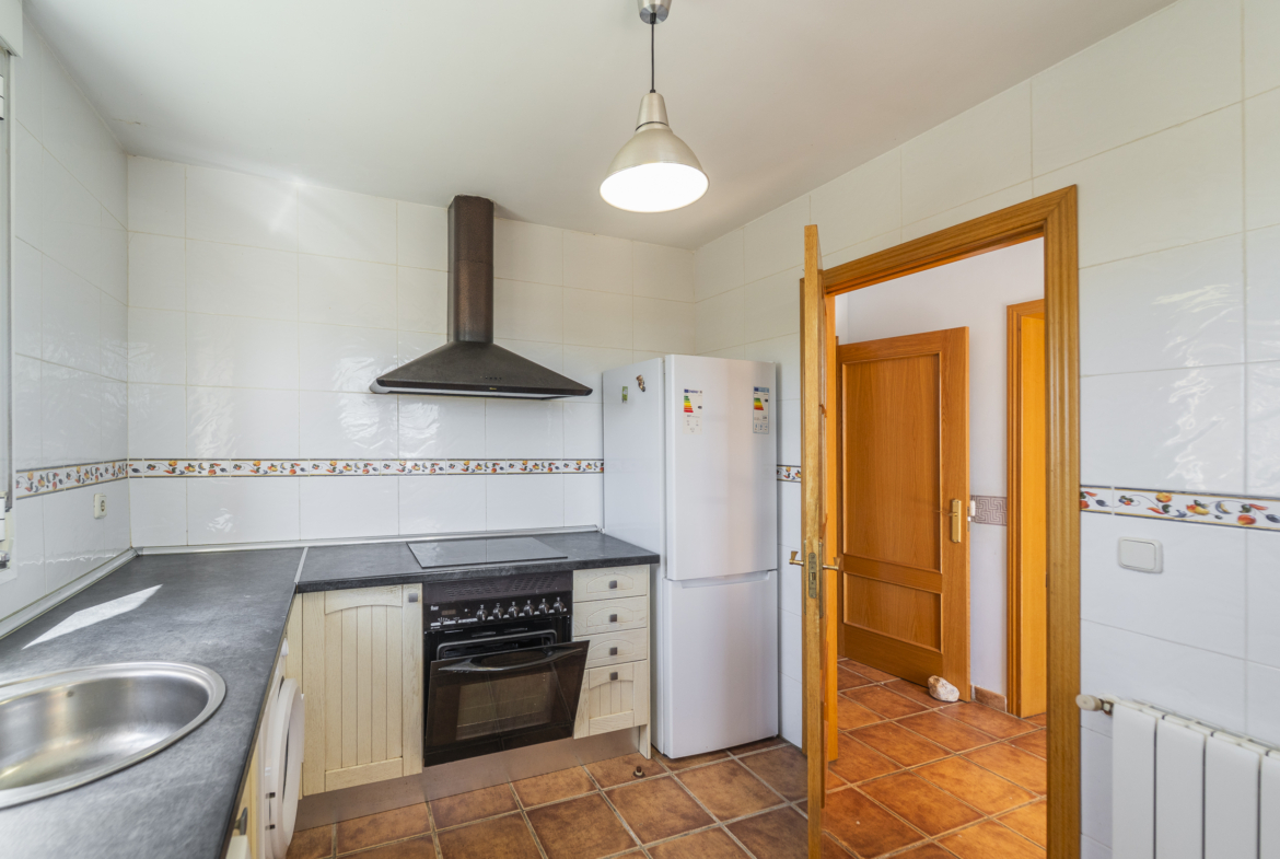 ​Planta Baja: Dispone de un amplio y luminoso salón-comedor de 25 m², cocina totalmente amueblada y equipada con electrodomésticos, una habitación versátil (ideal como despacho o dormitorio) y un aseo completo.