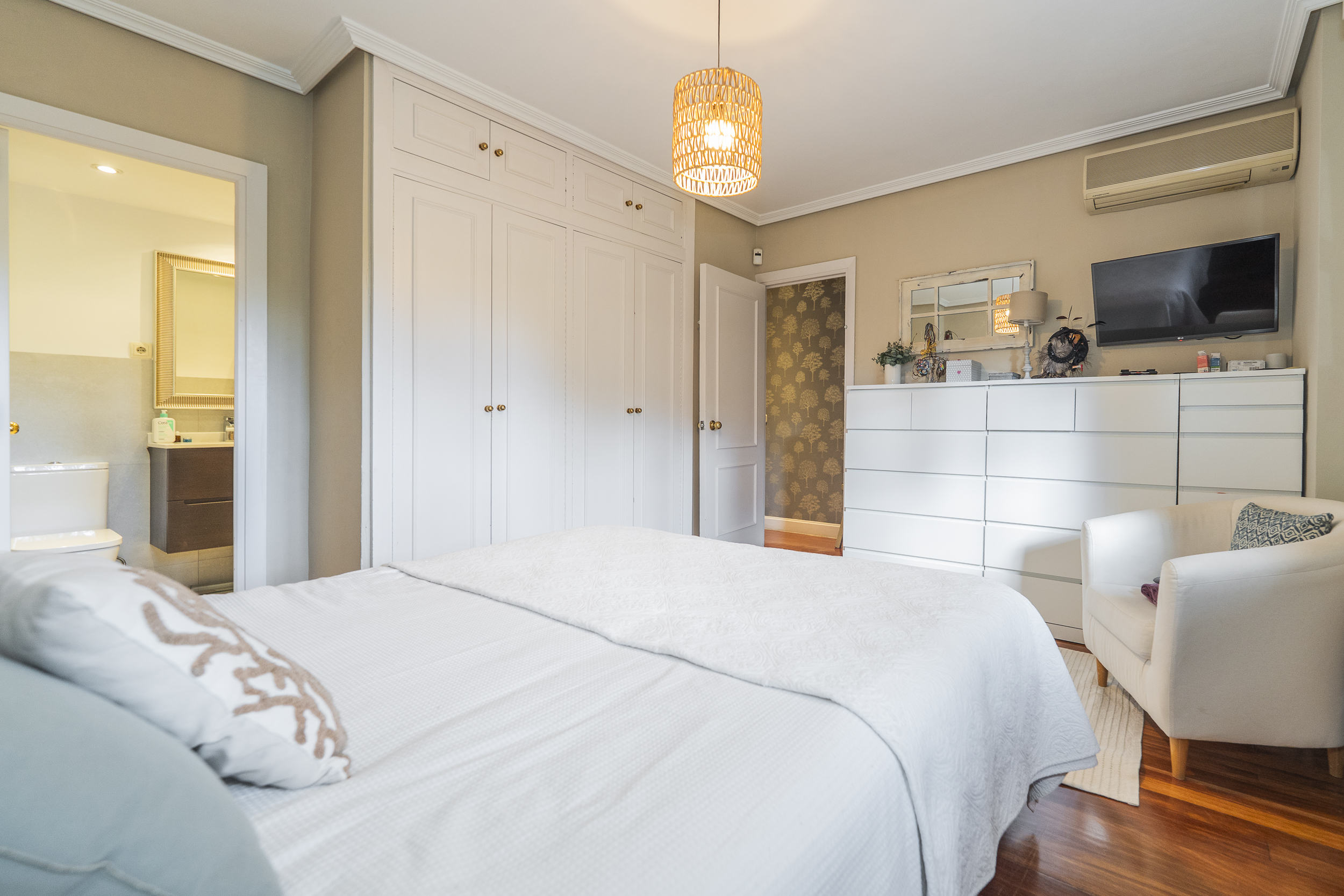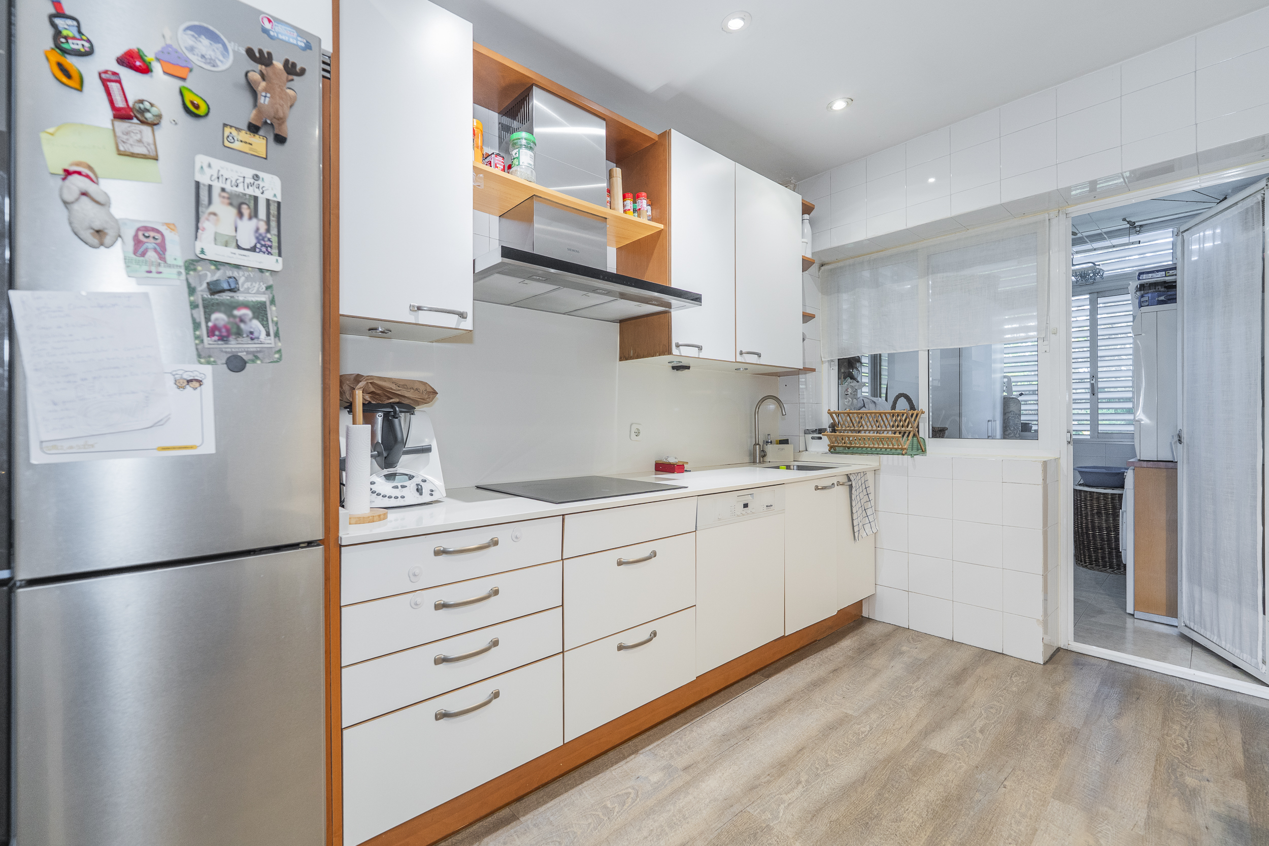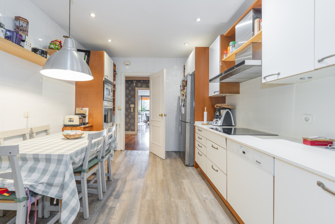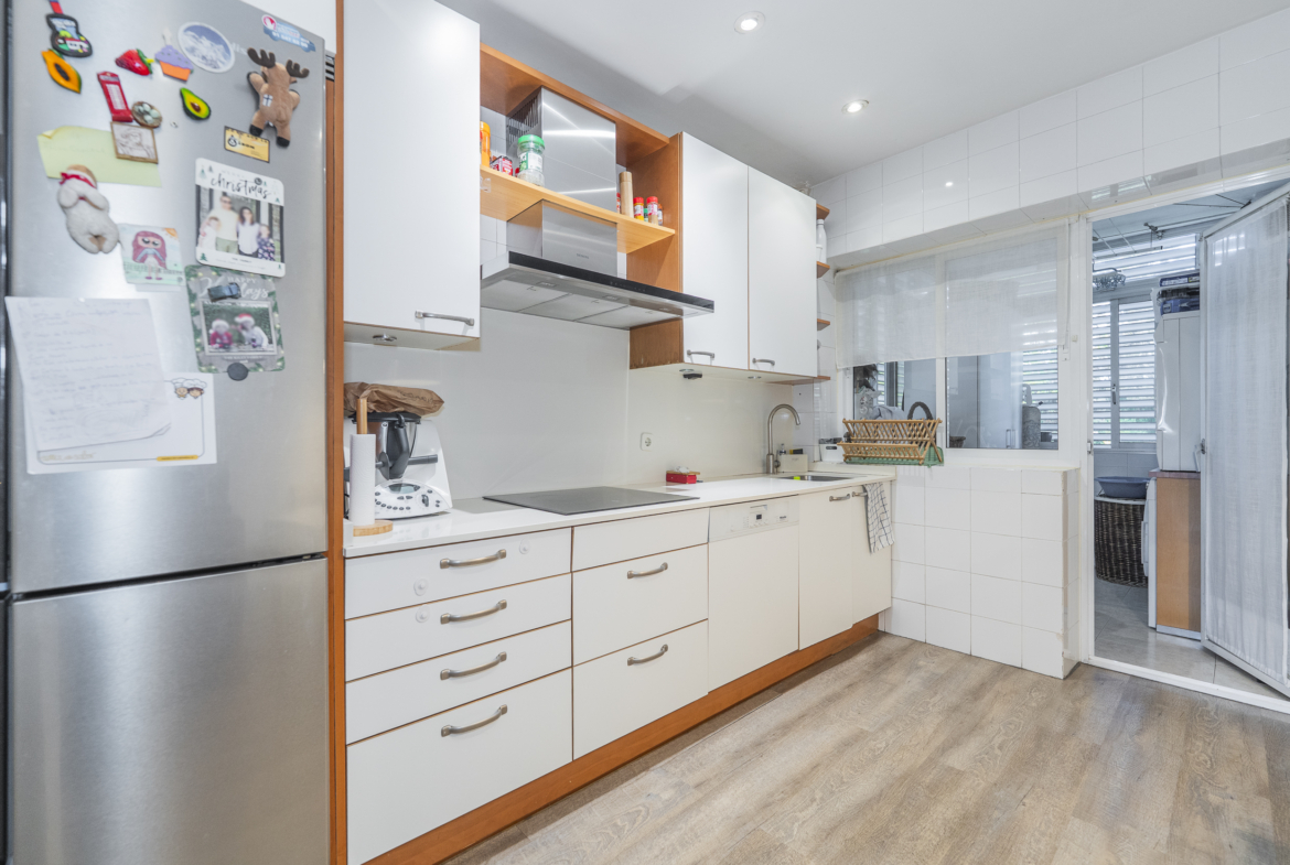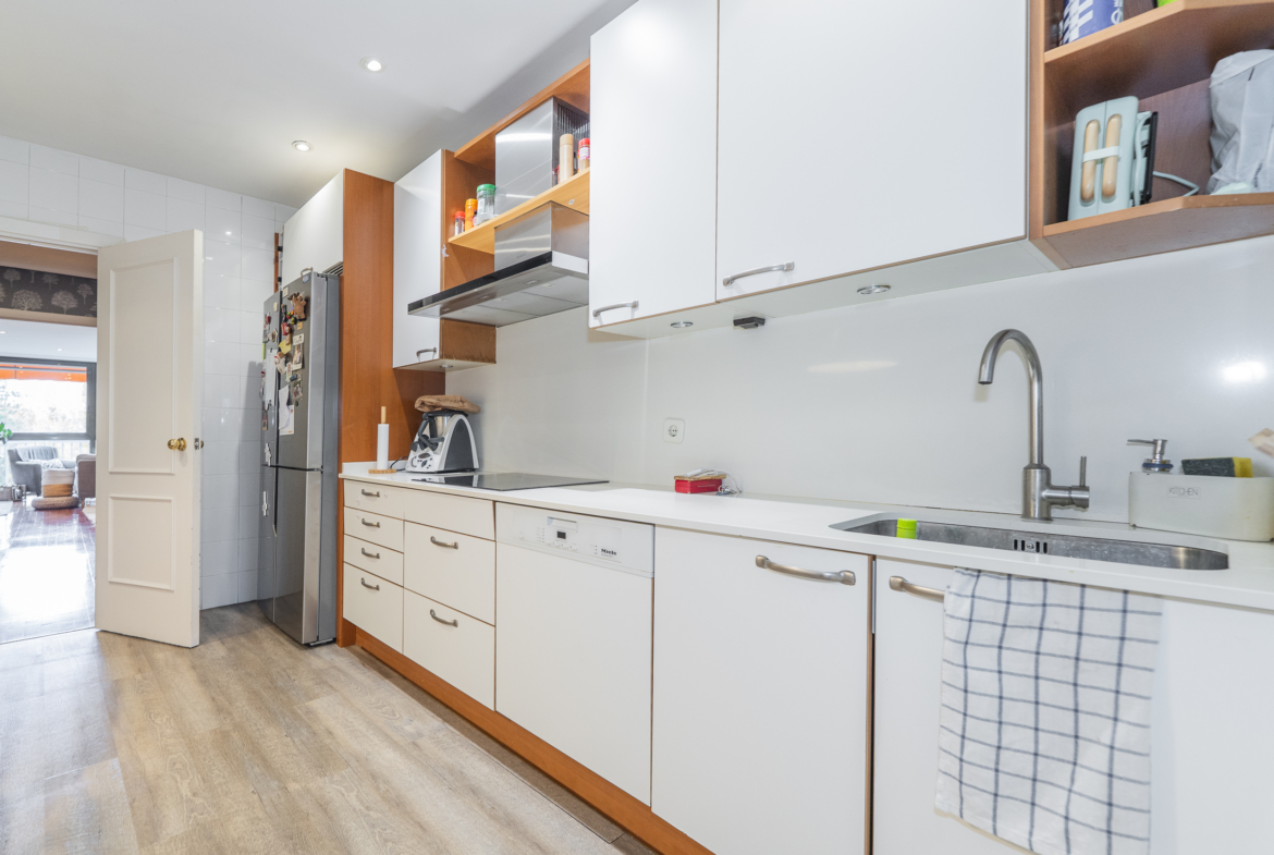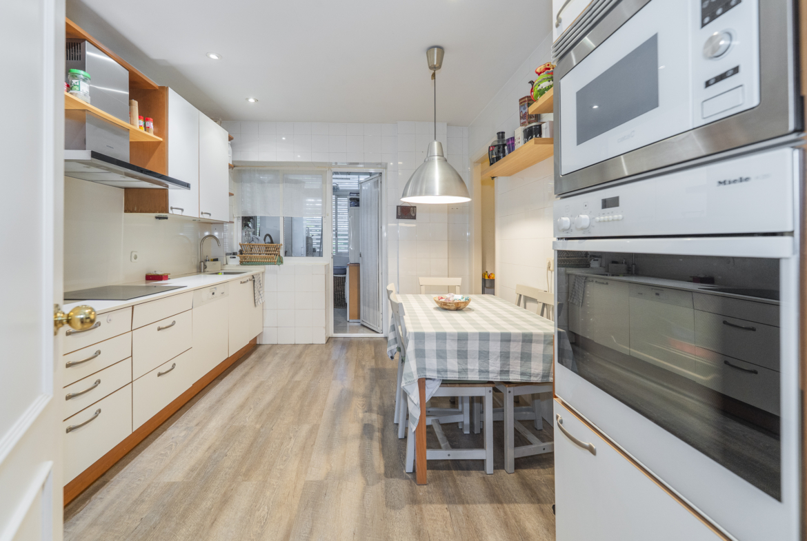 La propiedad cuenta con tres dormitorios, uno de ellos en suite, y un baño adicional. La cocina es independiente, con entrada de servicio y se entrega totalmente equipada con todos los electrodomésticos principales. El salón-comedor, lleno de luz natural y con agradables vistas a las zonas verdes de la urbanización.